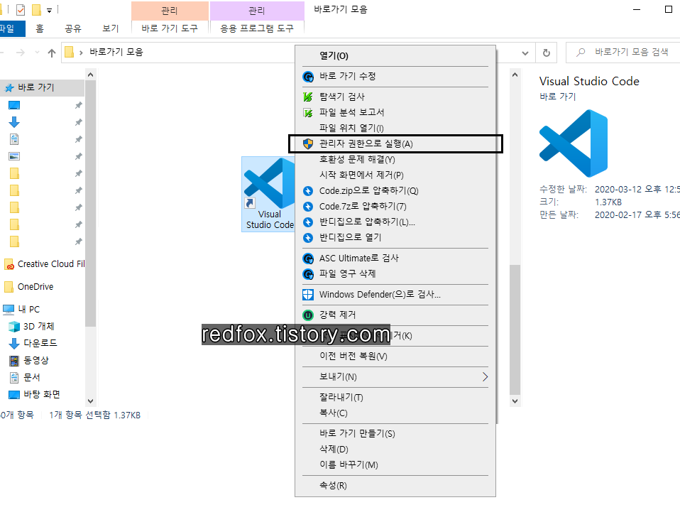 프로그램을 관리자 권한으로 실행하려면 프로그램 아이콘 우클릭 - [관리자 권한으로 실행]을 선택하거나, [Ctrl + Shift + Enter]와 같은 단축키 입력으로 실행하면 됩니다.